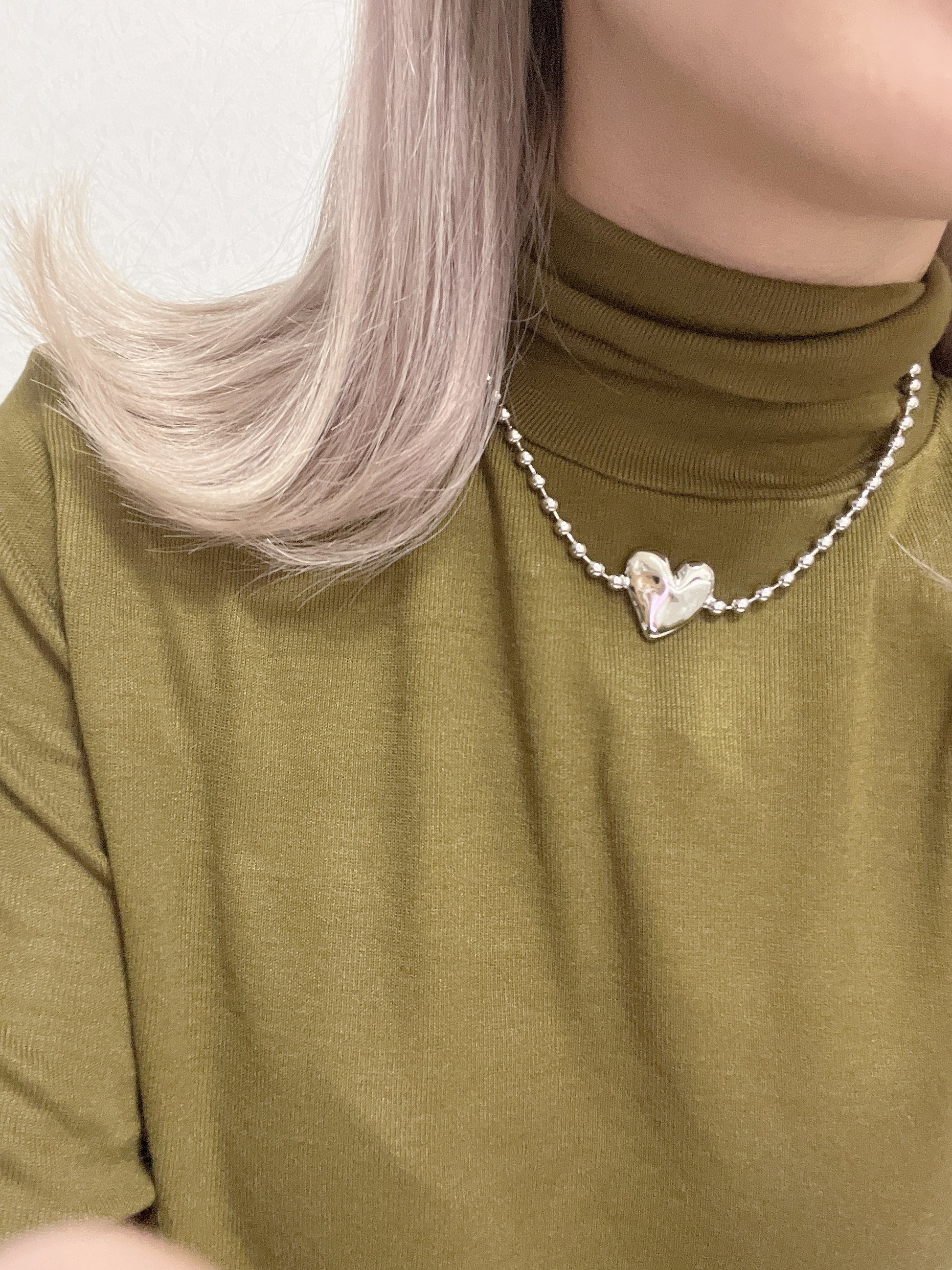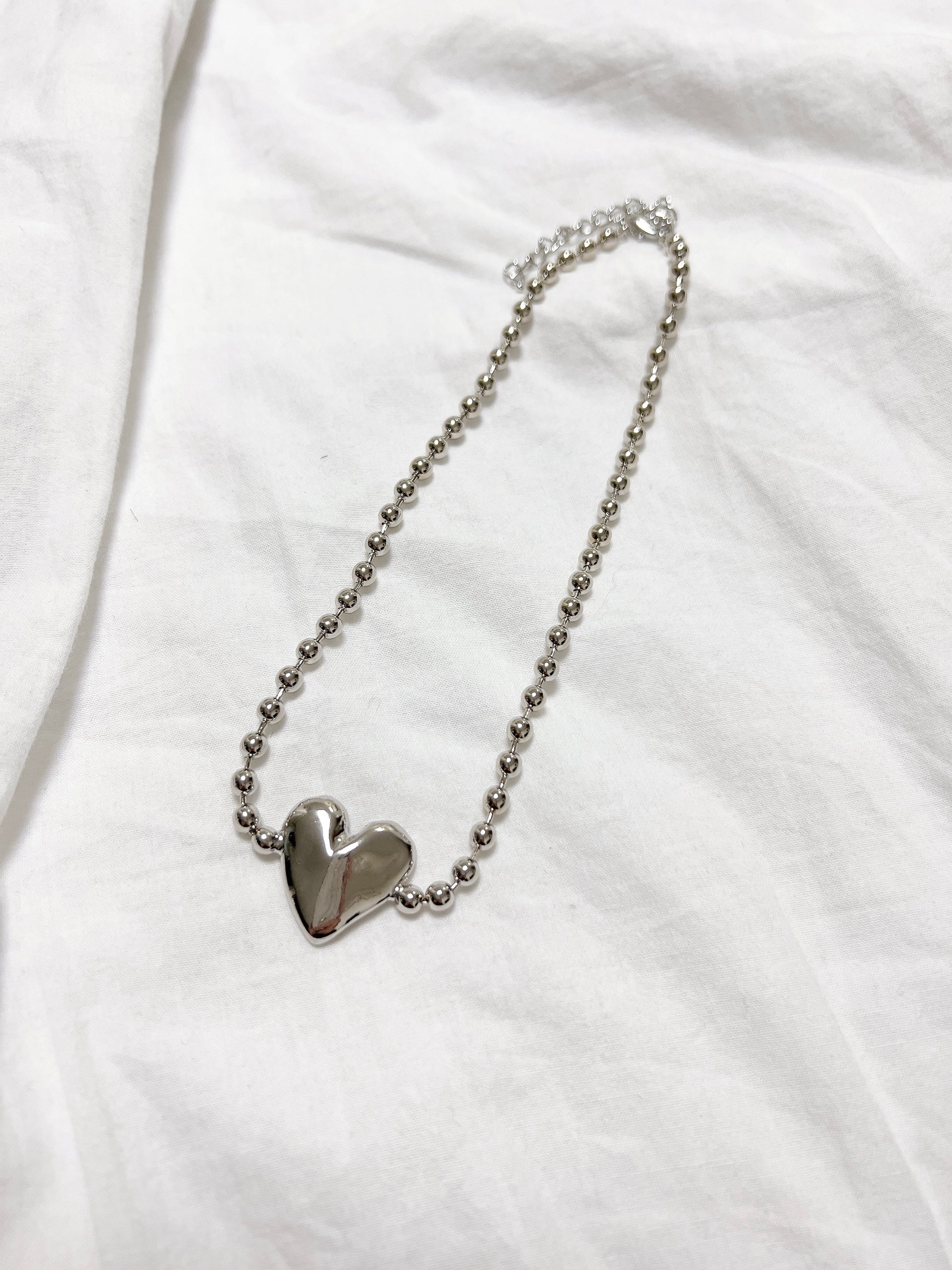 壓紋心形珠珠頸鏈