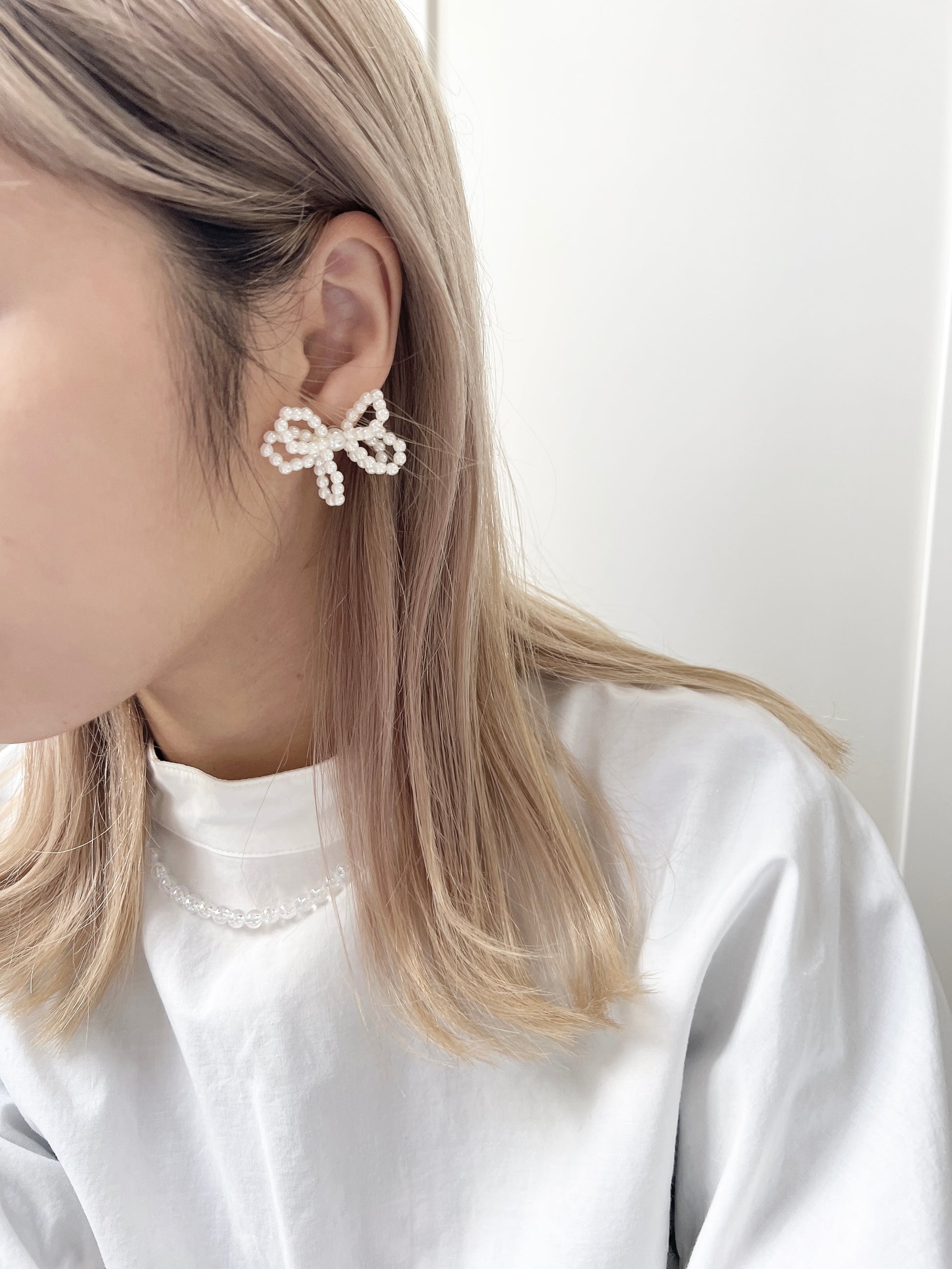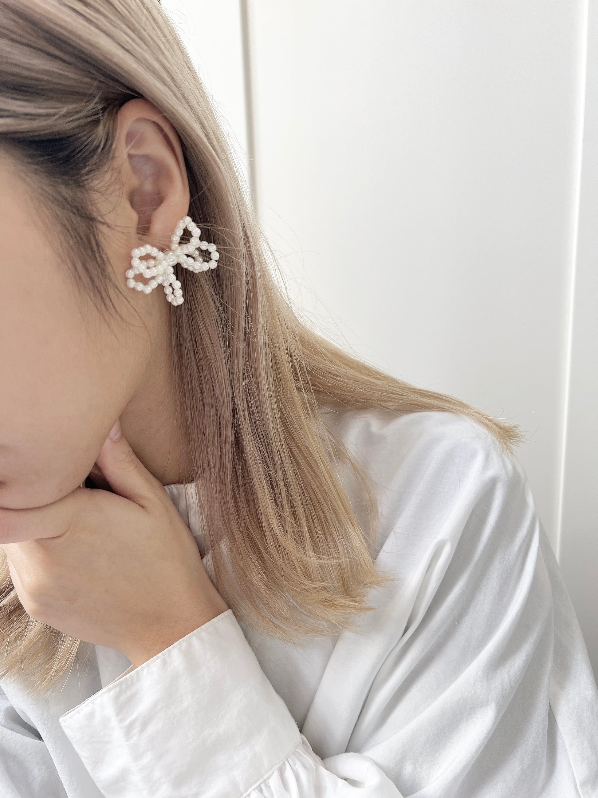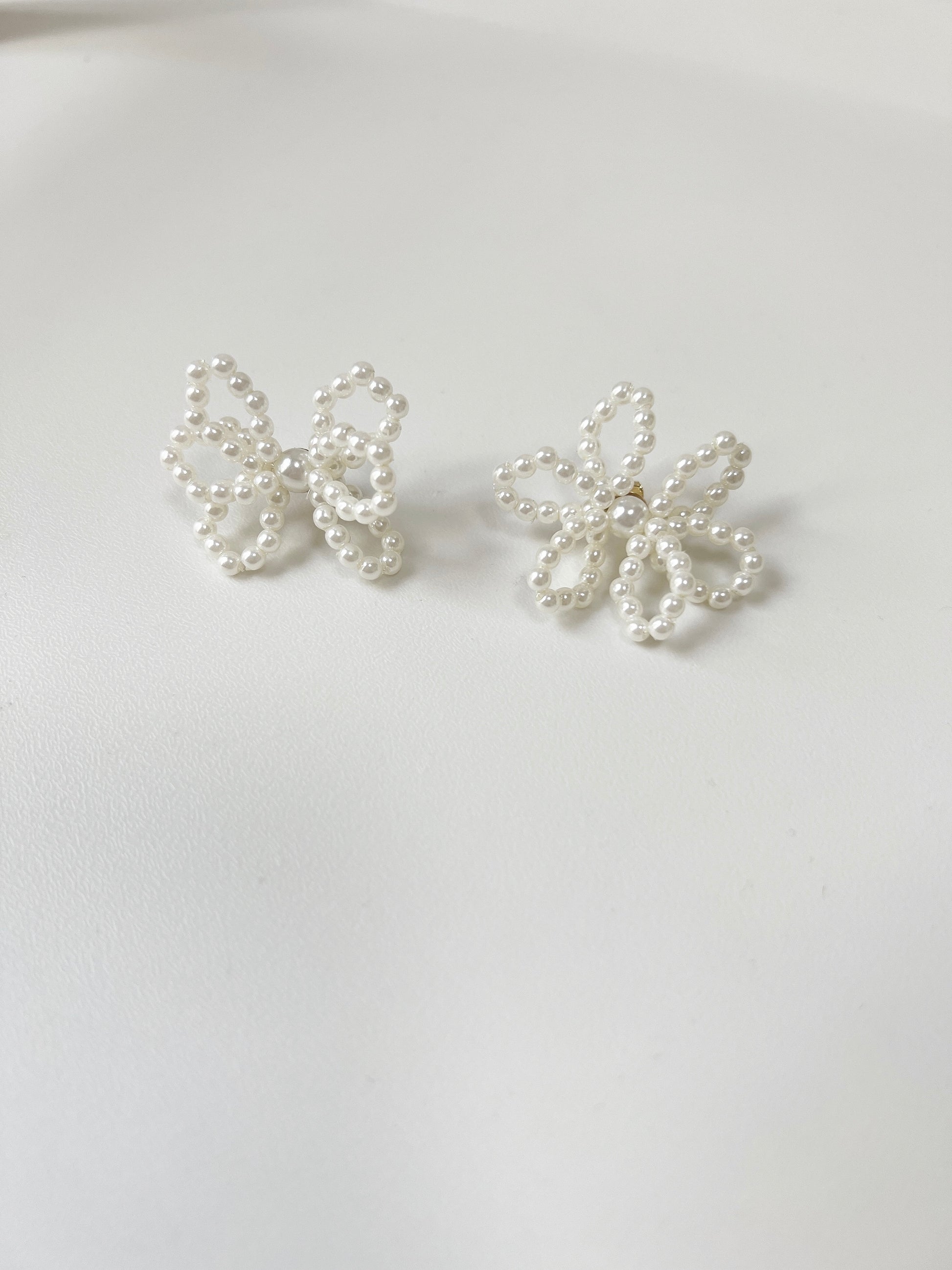 氣質珍珠花形狀耳環