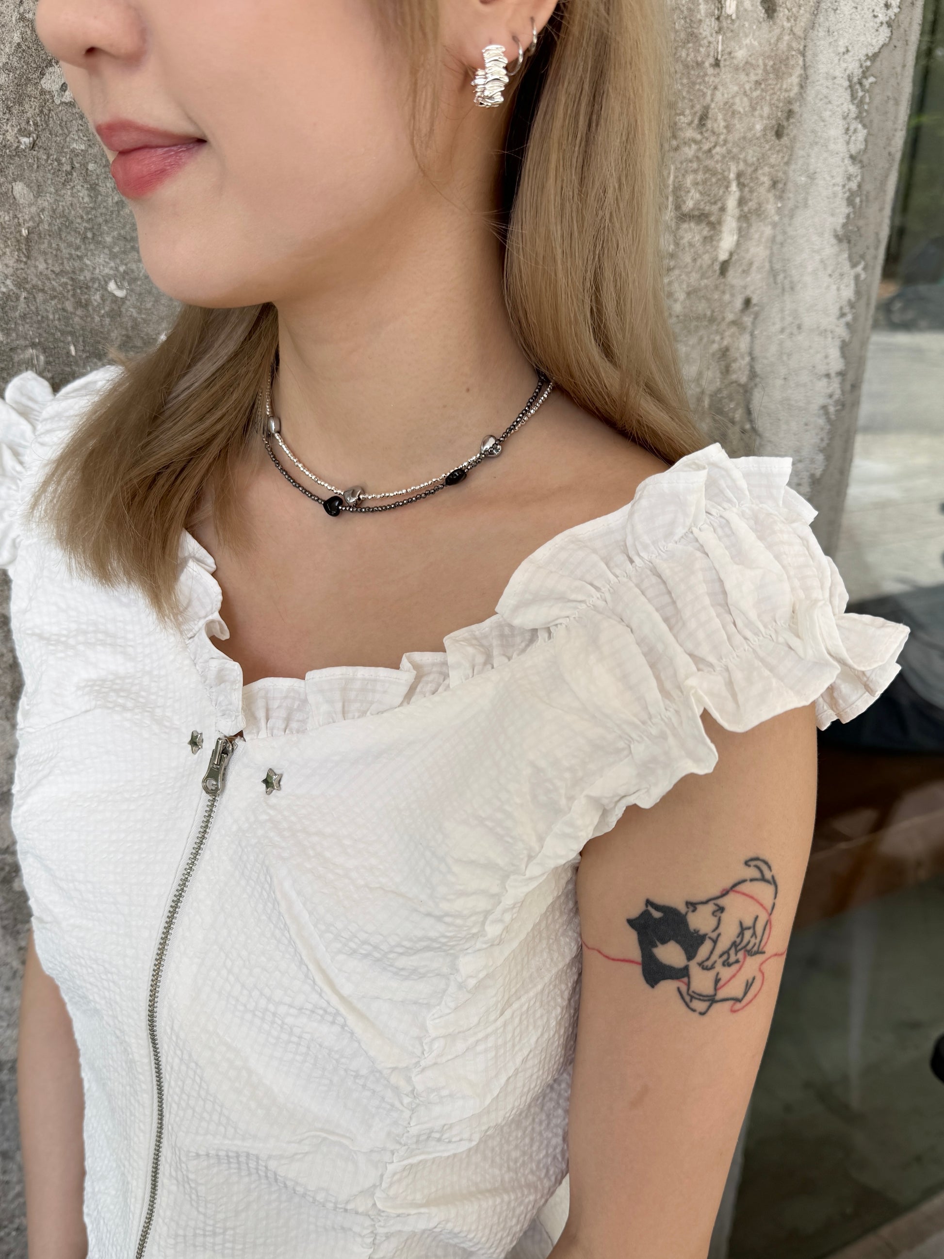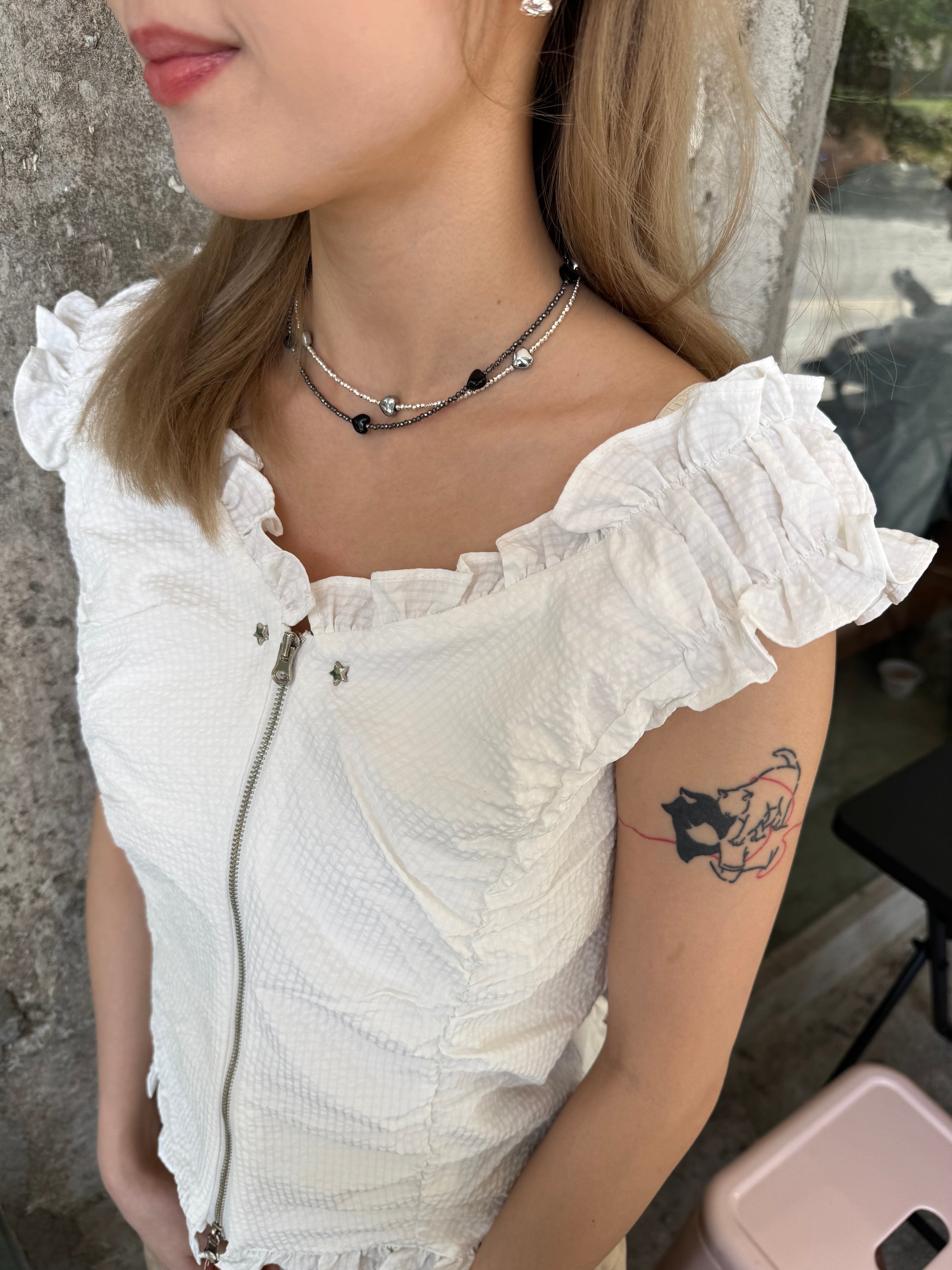 細碎閃石心心頸鏈