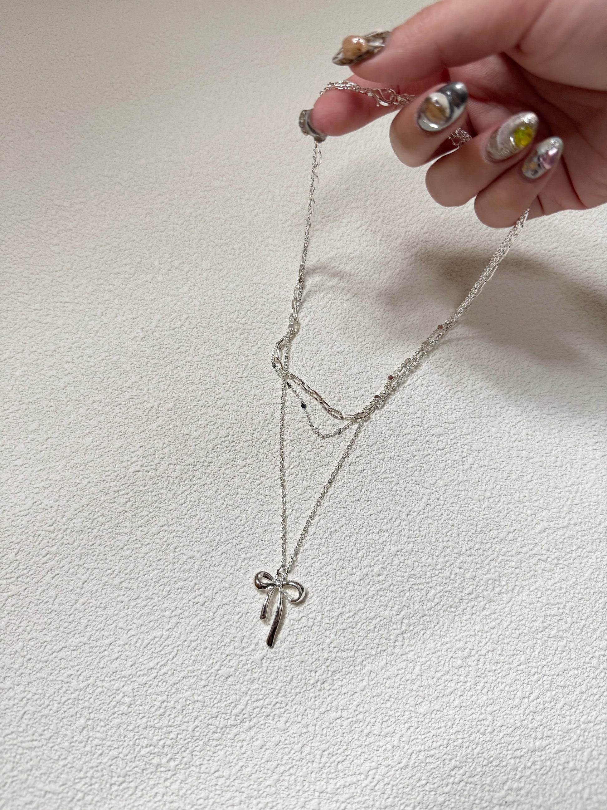 質感LAYER幼蝴蝶結頸鏈౨ৎ