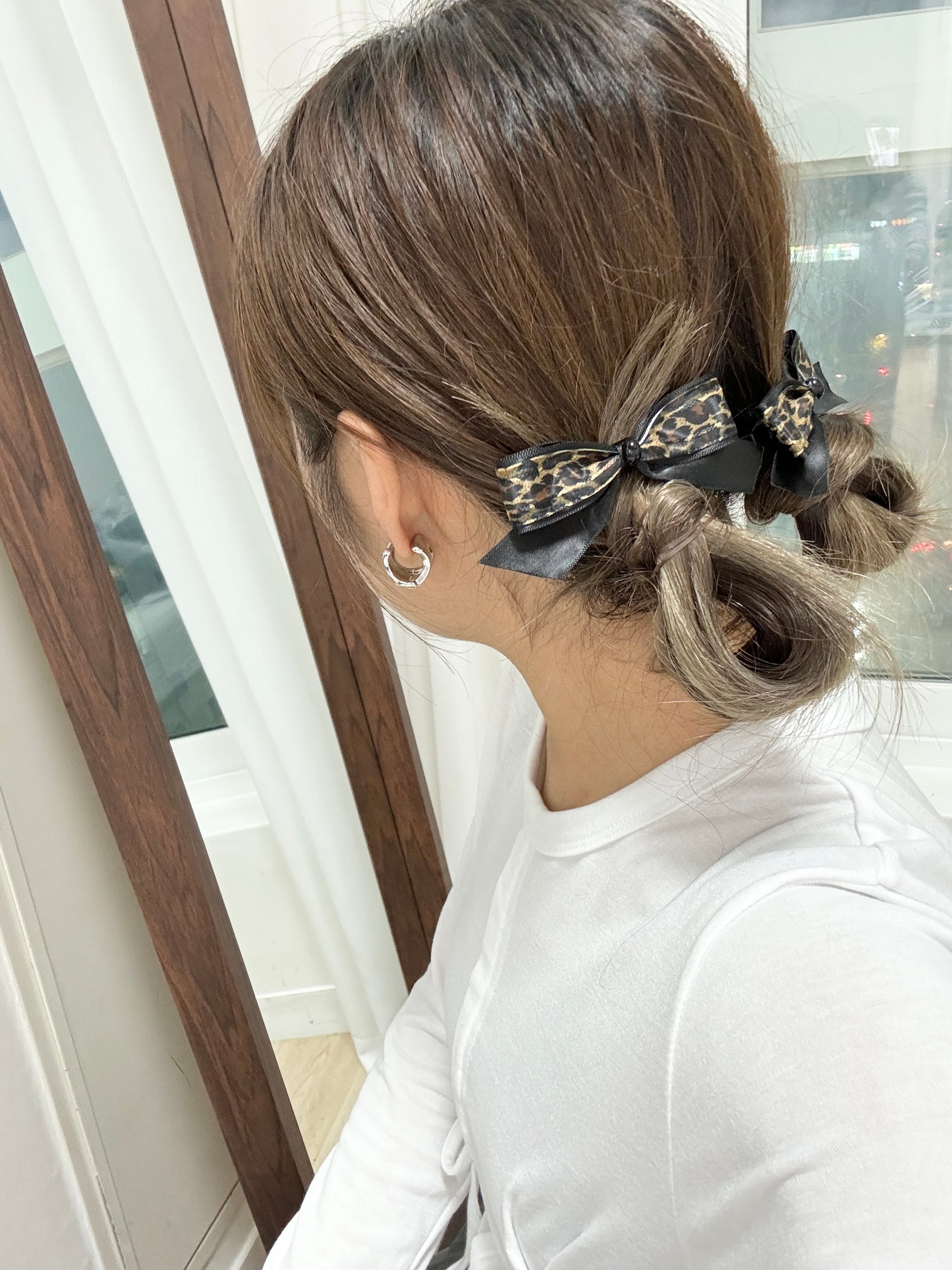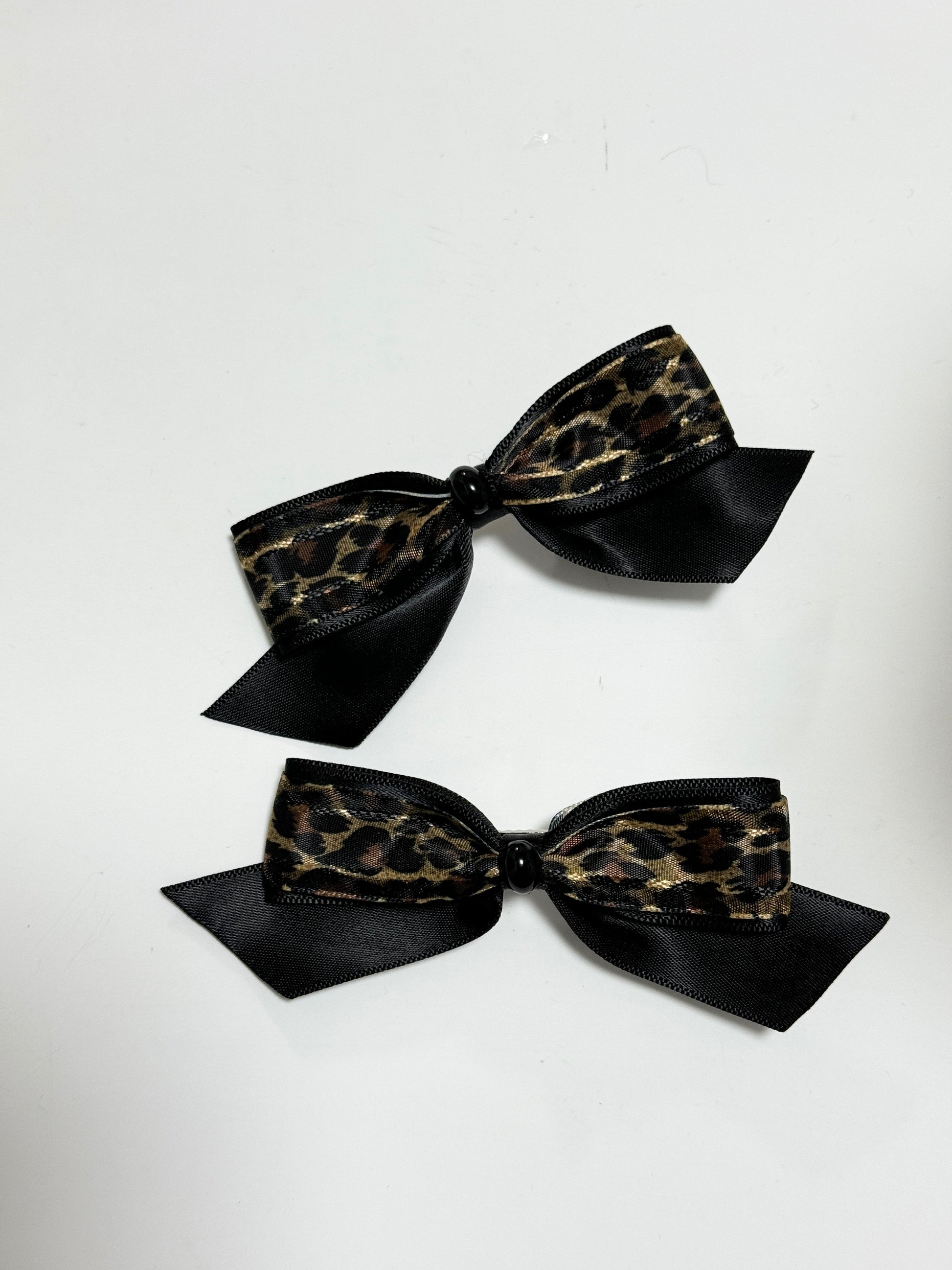 KR連線 豹紋絲帶蝴蝶結髮夾SET